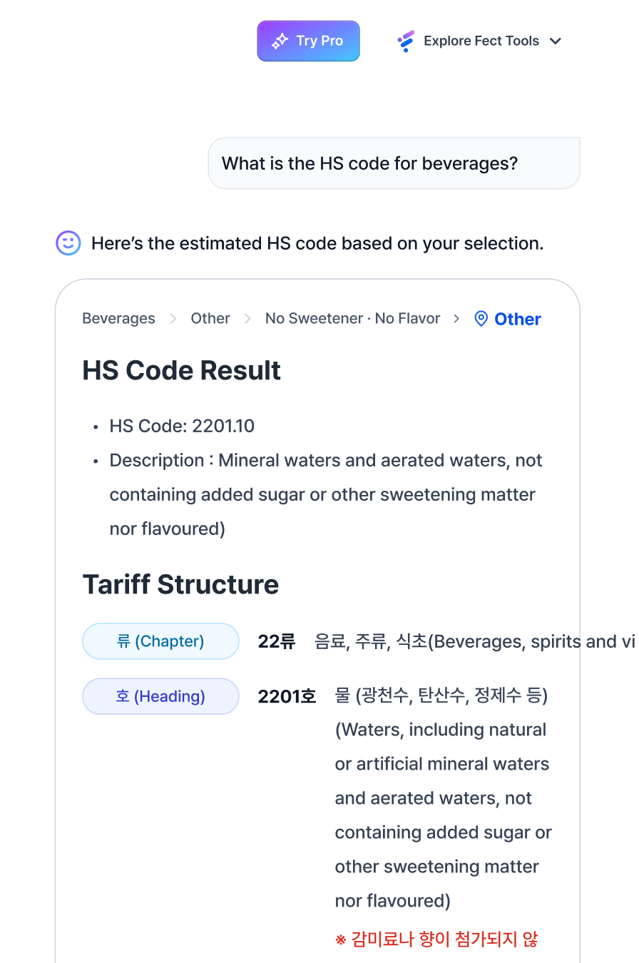 Sử dụng tự động hóa AI, Fect đơn giản hóa tra cứu mã HS, nâng cao độ chính xác và hiệu quả trong hoạt động thương mại.