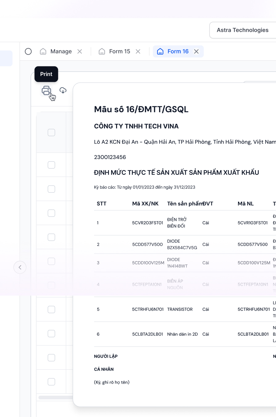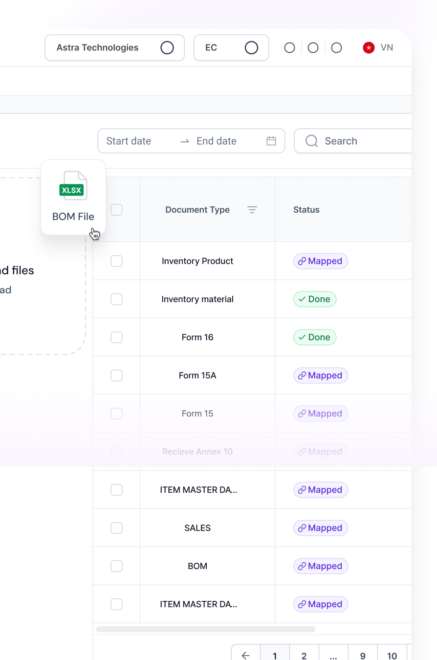 - Forecasts potential customs burdens from excess or unused materials through AI analysis.